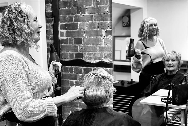 Karen Sparacia styling Dilys Mayor at the Sculpture Salon
